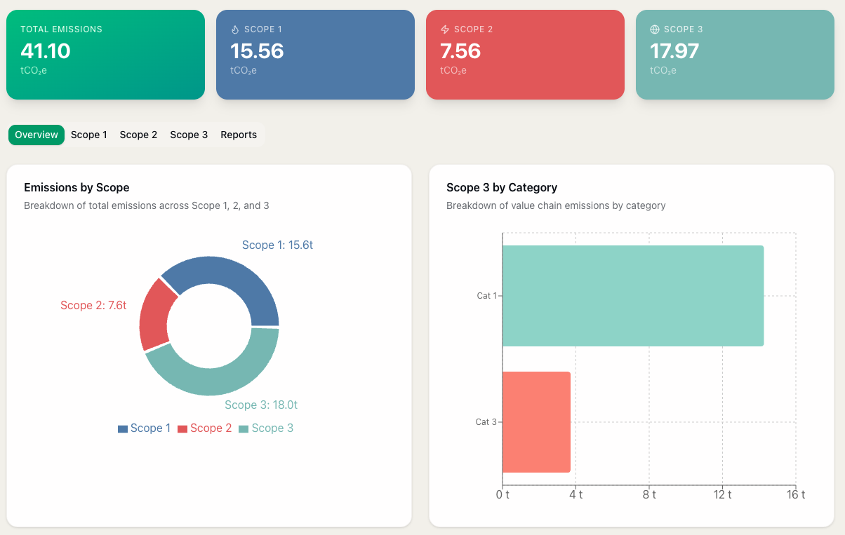 Complete GHG Protocol coverage with guided data entry and worked examples for every category.